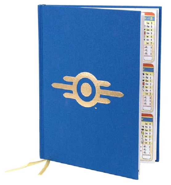 A beautiful 128 page sewn hardback with imperial cloth cover in Vault suit blue with a gold stamped Vault-Tec logo, both yellow and blue reading ribbons, printed by our exceptional high-quality European printer.